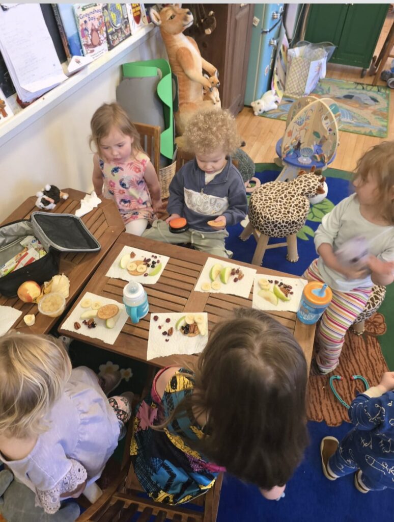 Wild Child provides a snack for each Supervised Play group, and we always try to make it relevant to that day’s lesson. In this picture you can see the makings of what turned out to be edible owls!