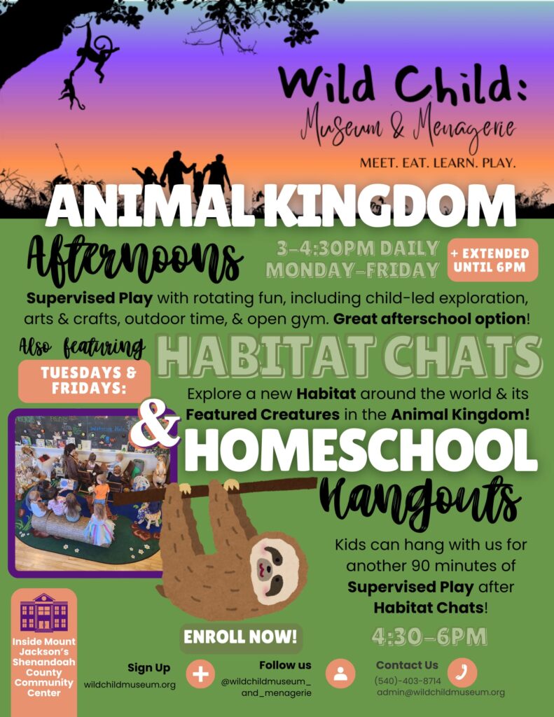 Here’s the direct link to sign-up for Habitat Chats: Homeschool Hangout: https://www.hisawyer.com/wild-child-museum-menagerie-1/schedules/activity-set/1797800